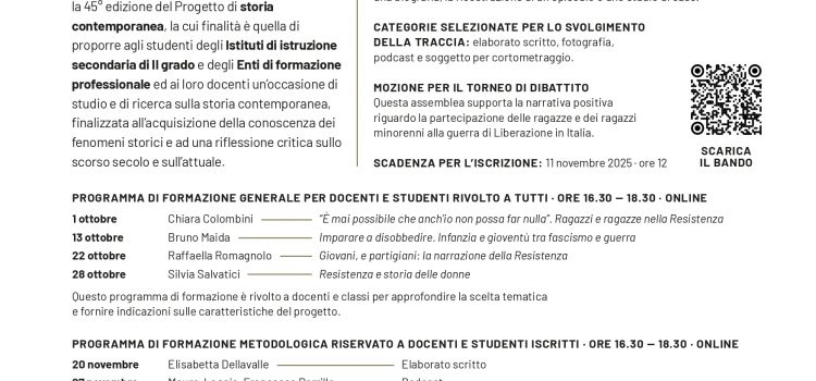 Ha preso il via la 45a edizione del Progetto di storia contemporanea, promosso dal Comitato Resistenza e Costituzione del Consiglio regionale del…