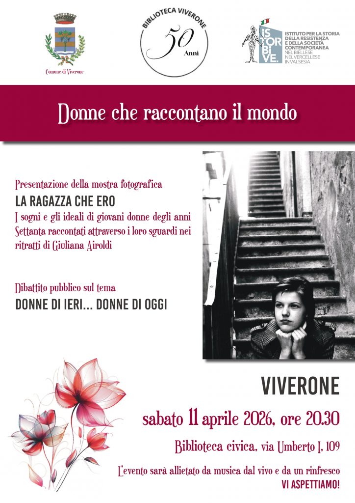 Sabato 11 aprile 2026, alla Biblioteca civica di Viverone, alle ore 20.30, si terrà l’incontro Donne che raccontano il mondo, organizzato dal Comune e dalla Biblioteca di Viverone, in collaborazione con l’Istorbive.