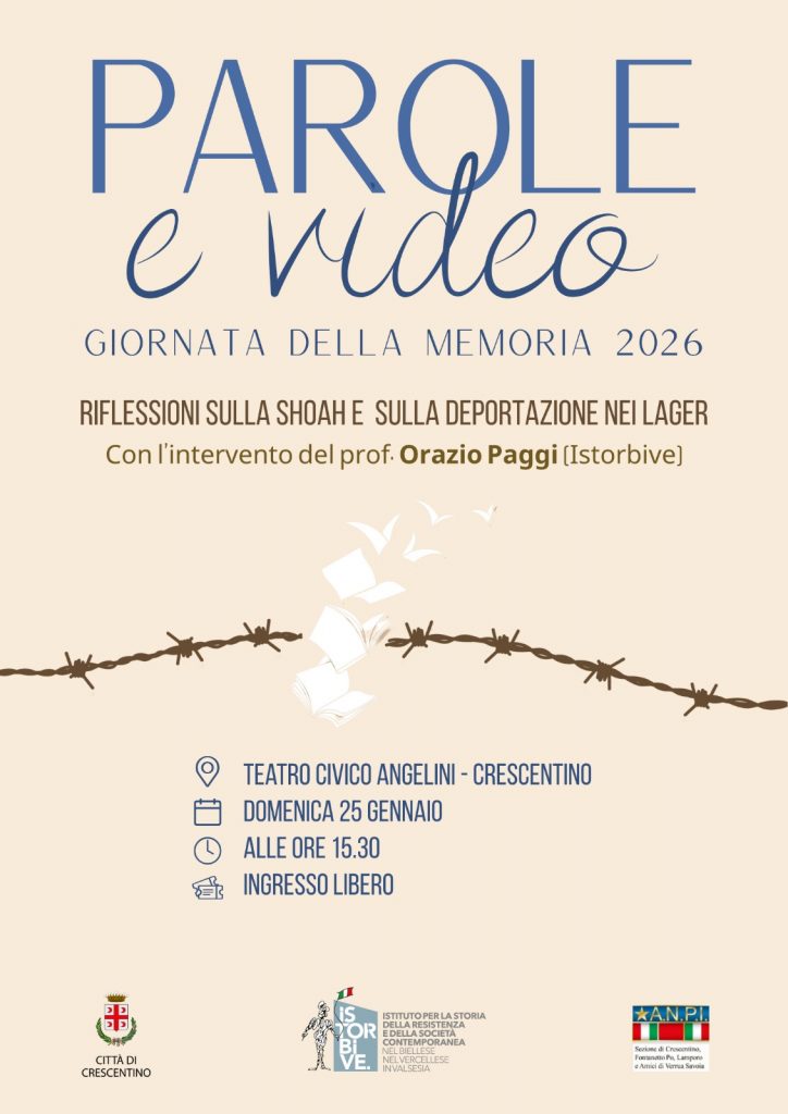 Domenica 25 gennaio 2026, al Teatro Angelini di Crescentino, alle ore 15.30, si svolgerà l’incontro Parole e video. Riflessioni sulla Shoah e sulla deportazione nei lager, con il prof. Orazio Paggi, consigliere dell’Istorbive.