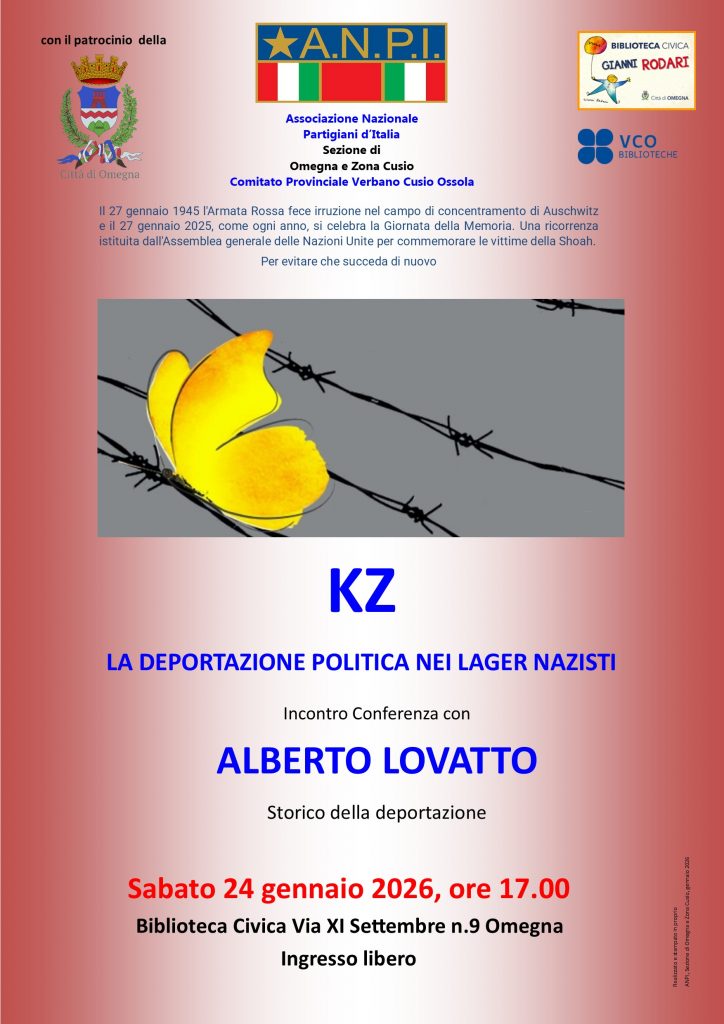 Sabato 24 gennaio 2026, alla Biblioteca civica di Omegna (via XI Settembre, 9), alle ore 17, si terrà la conferenza di Alberto Lovatto, collaboratore dell’Istorbive, KZ. La deportazione politica nei lager nazisti.