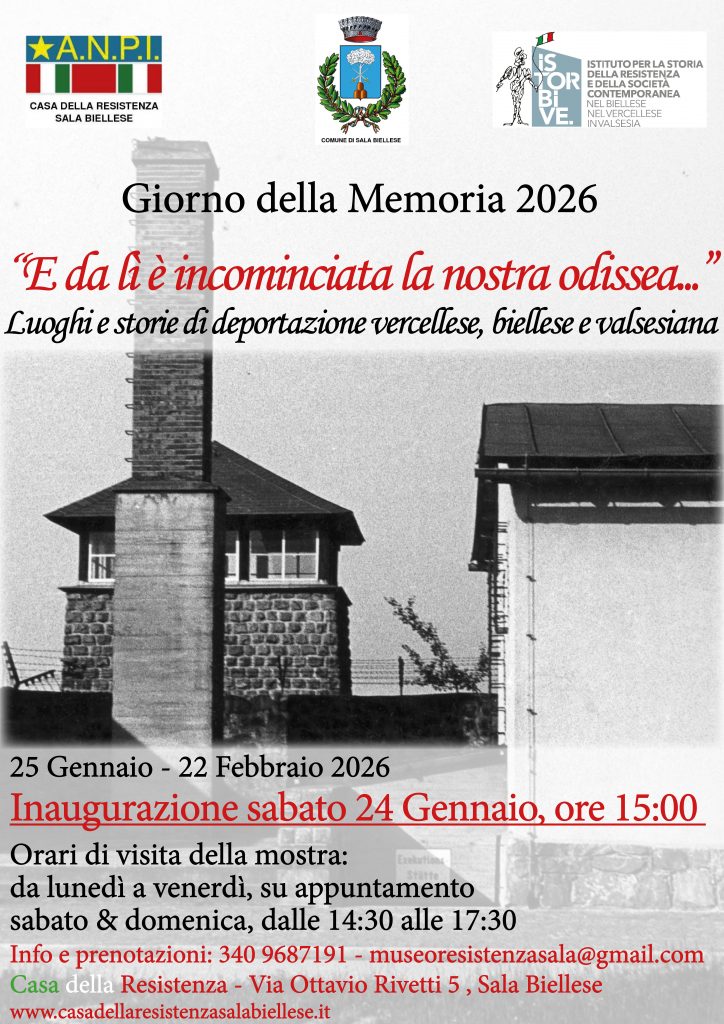 Sabato 24 gennaio 2026 sarà inaugurata alla Casa della Resistenza di Sala Biellese in via Ottavio Rivetti 5, alle ore 15, la mostra “E da lì è incominciata la nostra odissea…”. Luoghi e storie di deportazione vercellese, biellese e valsesiana, realizzata nel 2005 dall’Istorbive.